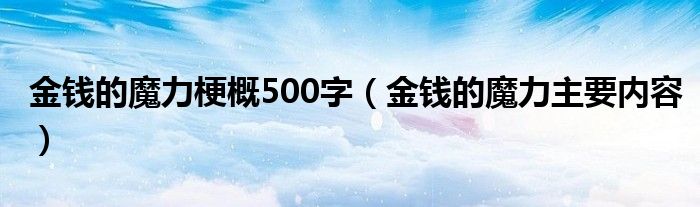 大家好,我是小科,我来为大家解答以上问题。金钱的魔力梗概500字,金钱的魔力主要内容很多人还不知道,现在让我们一起来看看吧!