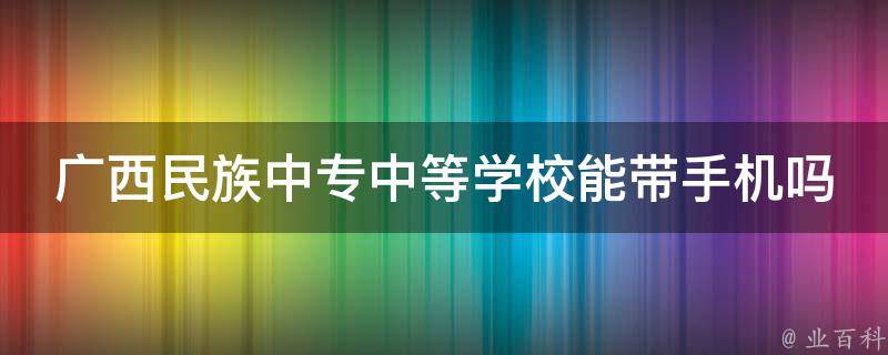 广西民族中专中等学校能带手机。大部分中专院校允许学生带手机,但是在学校上课期间不得使用手机,不得影响正常的教学。在课余时间可以自由使用手机,使用手机要适度,在上课期间必须调成静音,或者将手机关机,不能影响其他人学习,否则手机可能会被没收。