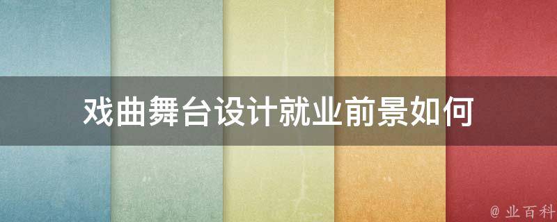 最佳答案戏曲舞台设计专业的就业前景较好,但具体的就业情况还会受到个人能力、兴趣爱好、市场需求等因素的影响。随着国内影视文艺的迅速发展,优秀的影视作品层出不穷,同时过去一度失宠的话剧、戏剧等艺术形式也重新受到大众的重视。这些表演和影视作品都离不开好的灯光设计和舞台设计,这为该专业的学生...