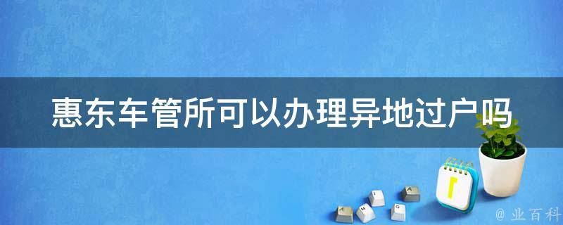 惠东车管所可以办理异地过户,但需要满足相关条件,即机动车档案已经移交,车辆尚未抵押,并且不存在违法、改装、逾期等违法行为;车主已经取得车辆登记地《车辆登记证书》和车架号码拓印件;车主已经取得车辆登记地车辆购置税完税证明或者免税凭证;车主已经取得机动车所在地公安机关的户籍证明或者其他相关身份证明。