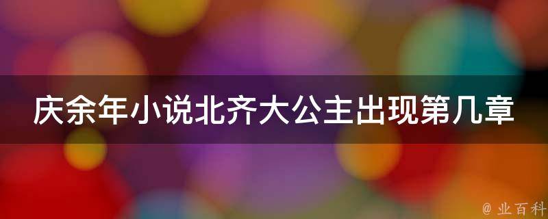 庆余年小说中北齐大公主出现于第四卷第八十六章。北齐大公主是北齐小皇帝同父异母的姐姐,为了缓和北齐与南庆的关系,北齐决定派大公主到南庆和亲,她将和北齐使团一起回庆国,最终嫁给了大皇子。