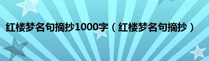 红楼梦名句摘抄1000字(红楼梦名句摘抄)