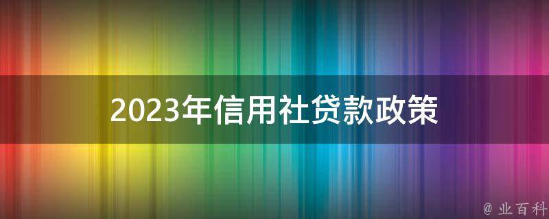 2023年信用社贷款政策