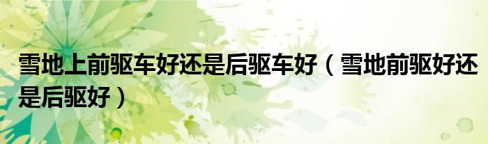 大家好,我是小科,我来为大家解答以上问题。雪地上前驱车好还是后驱车好,雪地前驱好还是后驱好很多人还不知道,现在让我们一起来看看吧!