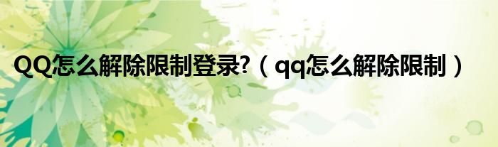 QQ怎么解除限制登录?(qq怎么解除限制)