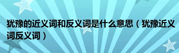 大家好,我是小科,我来为大家解答以上问题。犹豫的近义词和反义词是什么意思,犹豫近义词反义词很多人还不知道,现在让我们一起来看看吧!