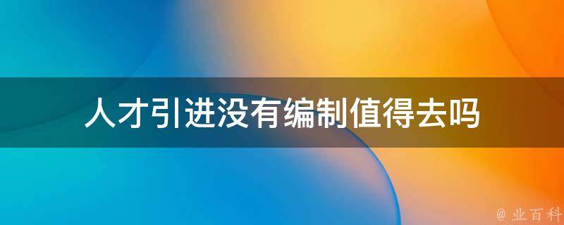 人才引进没有编制不值得去,人才引进的地区都是一些偏远地区,没有好的政策是无法真正吸引人才的,而如果连编制都无法解决的人才引进是看不到任何前途和希望的。因此人才引进没有编制不值得去。人才引进指因工作需要,当地的单位录用一个外省、市的在职的,且就业至少达到一定年限的人员,学历高于当地人才引进的最低要求的人才来当地就业。