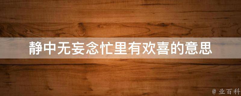 静中无妄念忙里有欢喜的意思