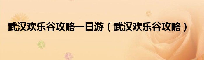 武汉欢乐谷攻略一日游(武汉欢乐谷攻略)