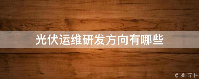 光伏运维研发方向有哪些