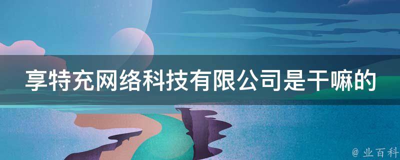 享特充网络科技有限公司主要从事其他技术推广服务,涉及技术服务、技术开发、技术咨询、技术交流、技术转让、技术推广,以及网络技术服务、物联网技术服务、信息技术咨询服务、日用百货销售、日用品销售、服装服饰零售等业务。