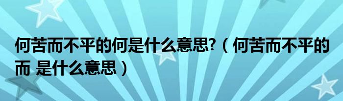 大家好,小华来为大家解答以上的问题。何苦而不平的何是什么意思?,何苦而不平的 而 是什么意思这个很多人还不知道,现在让我们一起来看看吧!