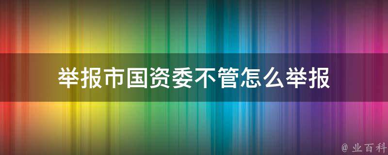 举报市国资委不管怎么举报