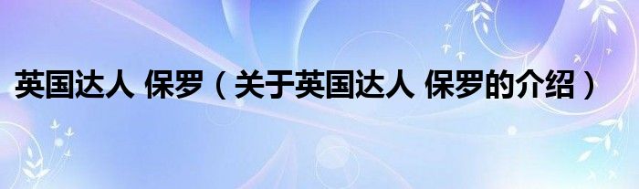 英国达人保罗(关于英国达人保罗的介绍)