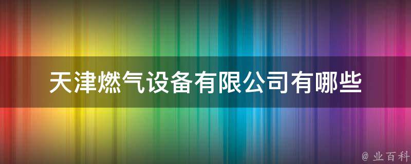 天津燃气设备有限公司有欧科能源技术(天津)有限公司、天津克瑞斯燃气设备有限公司、天津神菱燃气设备有限公司、新兴燃气(天津)有限公司、天津市汇信燃气设备有限公司等。燃气设备及管网是保障城市可靠供气的重要设施,其输送的是可燃介质,而且分布点多面广,涉及千家万户的用气。