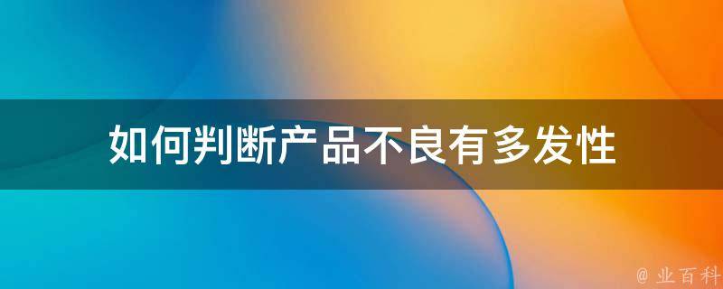 如何判断产品不良有多发性