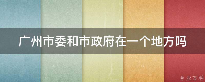 最佳答案广州市委和市政府不在一个地方。广州市委在越秀区法政路30号,而广州市政府在越秀区府前路1号。广州市人民政府是广东省广州市的国家行政机关,是副省级行政机关。广州是国务院定位的国际大都市、国际商贸中心、国际综合交通枢纽、国家中心城市、国家综合性门户城市、国家历史文化名城。