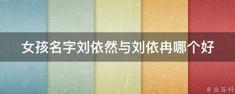 女孩名字刘依然与刘依冉都很好,具体取决于个人喜好。从字义上来看,刘依然有着顺其自然、从容不迫的寓意,给人一种沉静、自信的感觉;而刘依冉则有着依靠、希望、阳光的寓意,给人一种充满希望和活力的感觉。最终的选择还要考虑家人和朋友的意见,以及名字的音韵和重名率等因素。