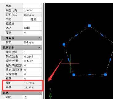 从弹出的”特性“属性界面中,展开”几何图形“列表,从中就可以获取当前图形的”面积“数据。
