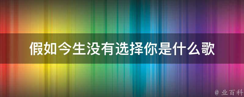假如今生没有选择你是什么歌