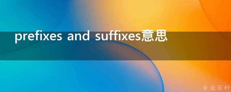 prefixes and suffixes意思是前缀和后缀。前缀(prefixes),后缀(suffixes),一般说来,前缀改变词义,后缀改变词性。例句:For example,consider the use of prefixes and suffixes,翻译:例如,考虑使用的前缀和后缀。