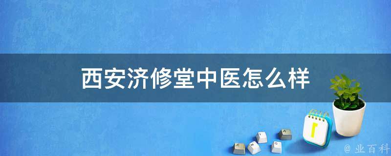 最佳答案西安济修堂中医是一家比较不错的医疗机构,具有较高的知名度和良好的口碑。西安济修堂中医门诊部是经过西安市莲湖区市场监督管理局批准成立的一家综合性医疗机构,公司以中医科、内科、外科、妇科、儿科为主要科室,涵盖了针灸推拿科、康复医学科等多个科室。济修堂中医门诊部秉承济世救人,修身养...