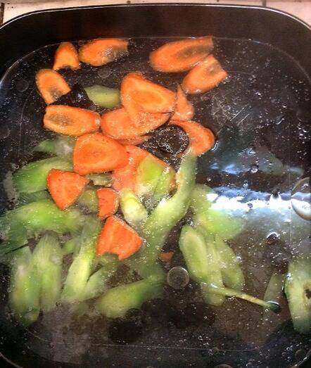 4、锅内放入水,水开放一小勺盐,滴几滴油,将蔬菜放入,水开后就捞出来。