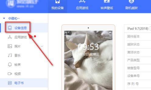 3、点击左侧设备信息。