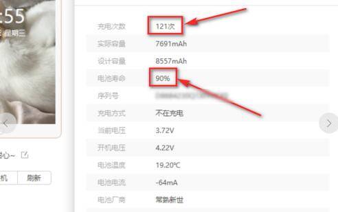 5、即可查看电池的具体寿命健康以及充电次数。