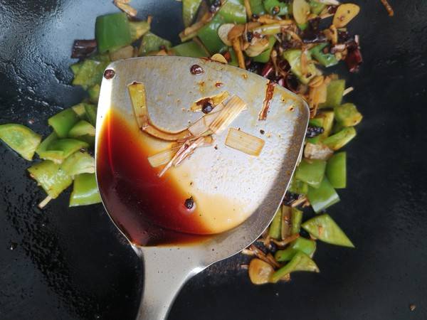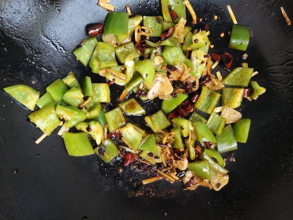 用料:小海兔220克、青椒100克、食用油5克、盐1克、郫县豆瓣酱8克、料酒6克、生抽8克、花椒粉1克、葱1段、姜4克、蒜3瓣。