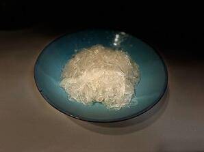 旱藕粉丝放进烧开的水里煮至透明,捞出沥干水分备用。