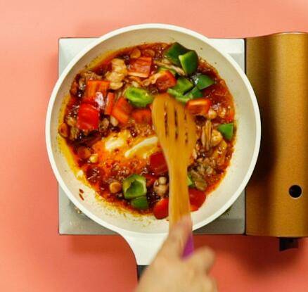 加入豆瓣酱,生抽,料酒,白砂糖,翻炒均匀。