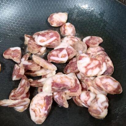 小贴士:因为香肠腌制过的,本身的味道足够香了,就不用放其他调料了。