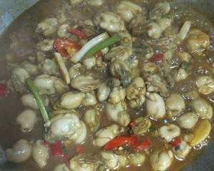 最佳答案用料:牡蛎500克、生抽一勺、白胡椒适量、姜葱蒜适量、料酒一小勺、味精少许、盐。1、牡蛎反复冲洗干净,沥干。2、起油锅,放姜片,蒜瓣,葱段煸香。3、倒入牡蛎轻轻翻炒。4、放白胡椒。5、牡蛎收缩自然出水。6、煸干后加生抽料酒,倒入小米辣。7、小米辣断生后撒香葱段,加少许味精,关火翻炒均匀。