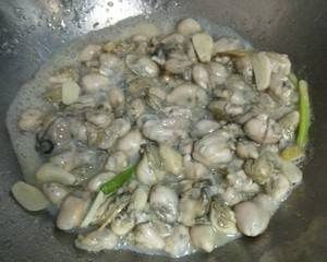 3、倒入牡蛎轻轻翻炒。