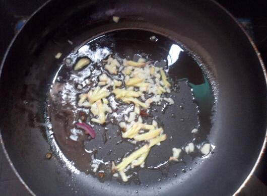3、热锅倒油放入姜、蒜炒香。