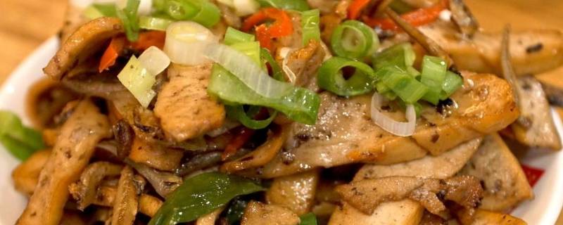 放入牛肉粒炒至全部变色,放入豆腐干颗粒翻炒一到两分钟。