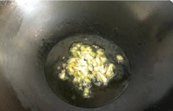 2、油烧至七成熟加入蒜末爆香。