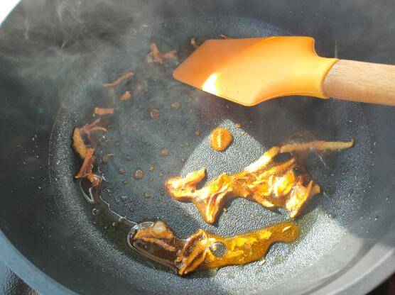 6、接着放入葱花、胡萝卜丝,炖煮1-2分钟。