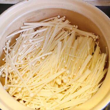 5、铺好金针菇,铺上煎好的豆腐。