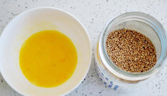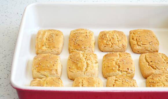 最佳答案用料:低筋面粉250克、泡打粉4克、小苏打2克、玉米油100克、白糖70克、鸡蛋1个。1、所有材料准备好。2、玉米油、鸡蛋和白糖混合均匀。3、倒入混合好的低筋面粉、泡打粉和小苏打。4、抓拌均匀,形成光滑的面团。5、用擀面杖擀成1厘米厚的方形饼状。6、准备好鸡蛋液和白芝麻。7、将方形面饼切成若干小...