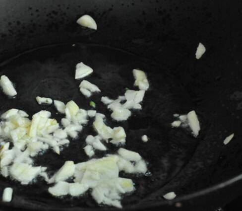 3.油锅烧热,将蒜末倒入锅中,爆炒出香味。