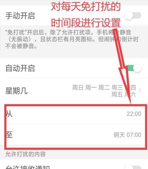 5、点击开启“允许接受通知选项”,对允许接受的信息、来电进行设置,即可完成免打扰设置。