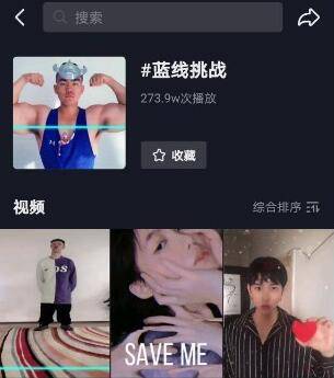 2、然后就会看到别人发的视频,这时候只需要点击黄色字体的“蓝线挑战”即可。进入界面之后点击立即参与即可。