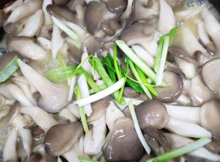 加适量料酒,葱白,盐,翻炒入味 如果蘑菇比较大,可以添少量水,炒透为止。
