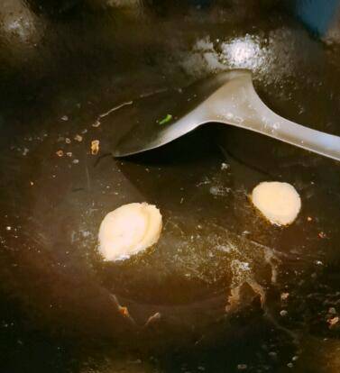 3、油热下姜片。