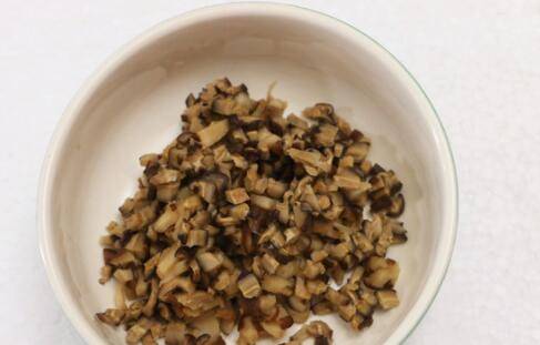 6、锅中倒入少许油,将香菇碎倒入锅中慢慢炒熟。