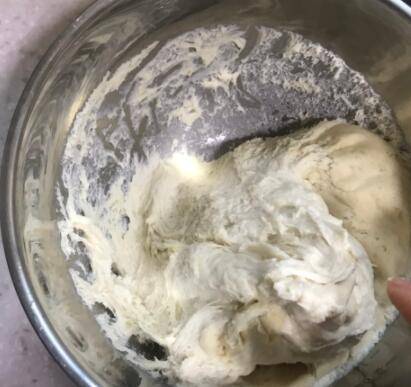 1、准备500克面粉,把酵母放进面粉中,分几次添加温热的牛奶和水,用筷子搅成棉絮状。