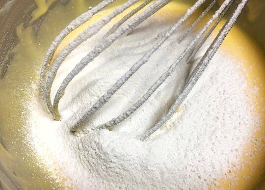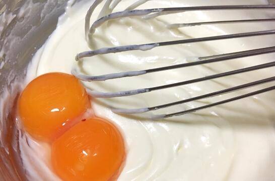 2、加入蛋黄搅拌均匀。