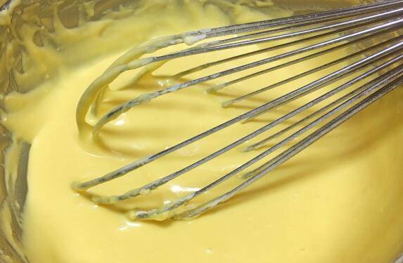 4、搅拌均匀的奶酪糊。